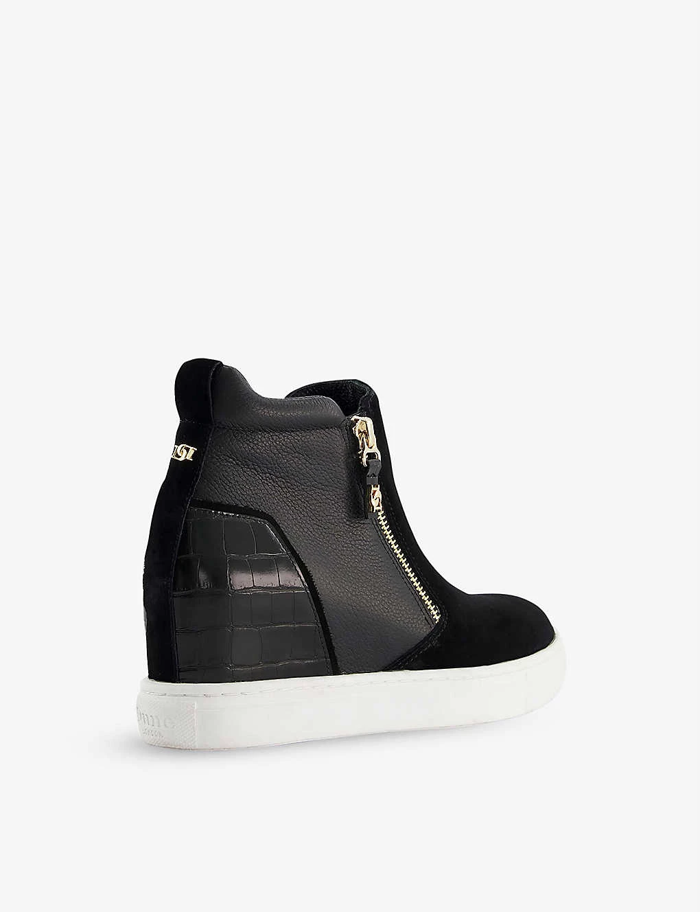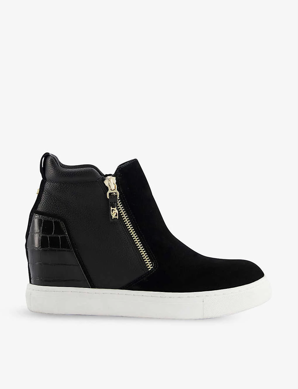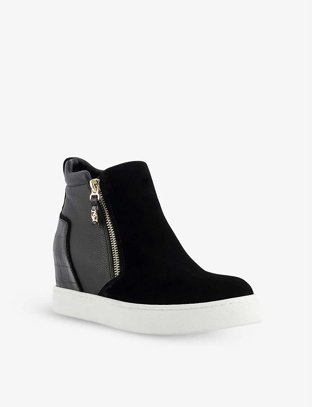 DUNE Concealed-wedge Croc-effect Faux Leather Trainers For Womens Black-suede