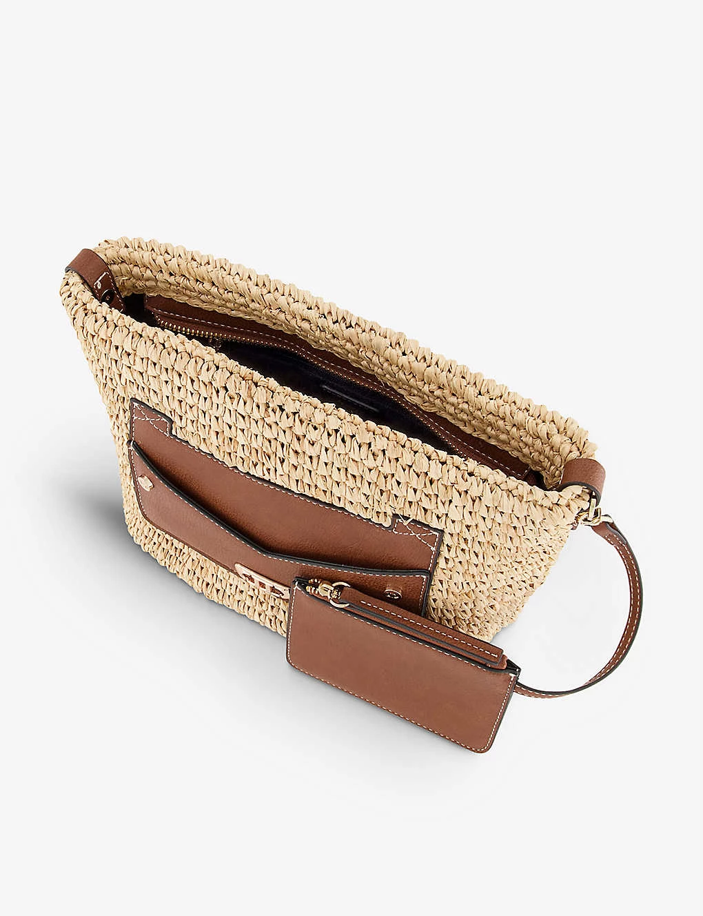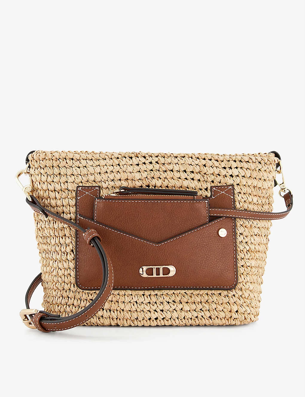 - Dune raffia and leather cross-body bag