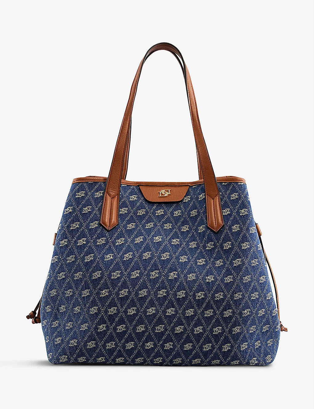 DUNE Denton Large Woven Tote Bag For Womens Blue-denim Fabric