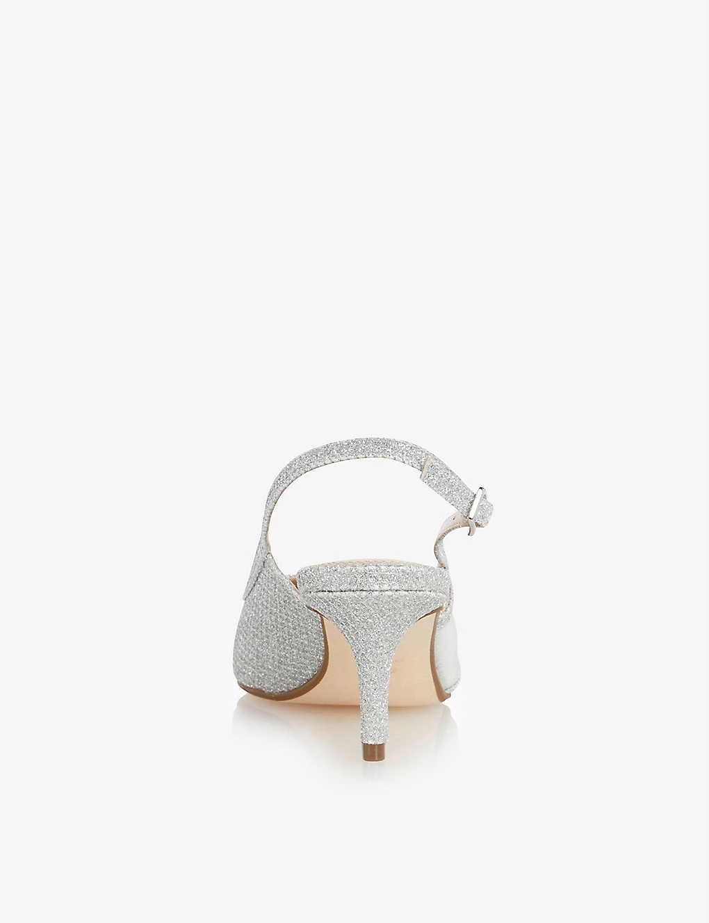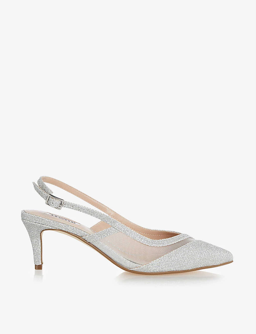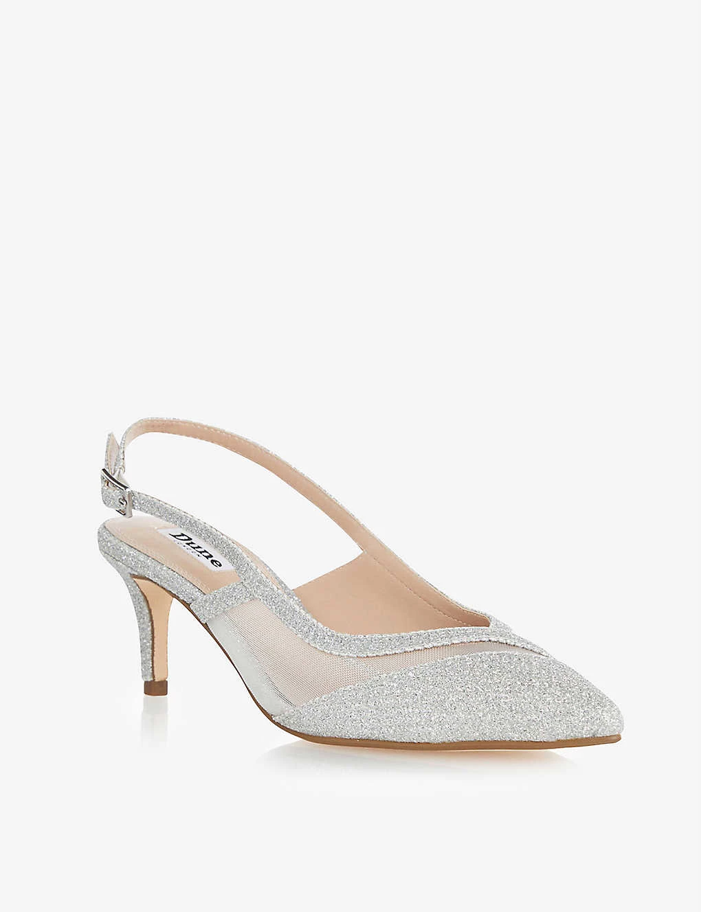 DUNE Dillia Mesh-panel Glittered Slingback Courts Silver-fabric
