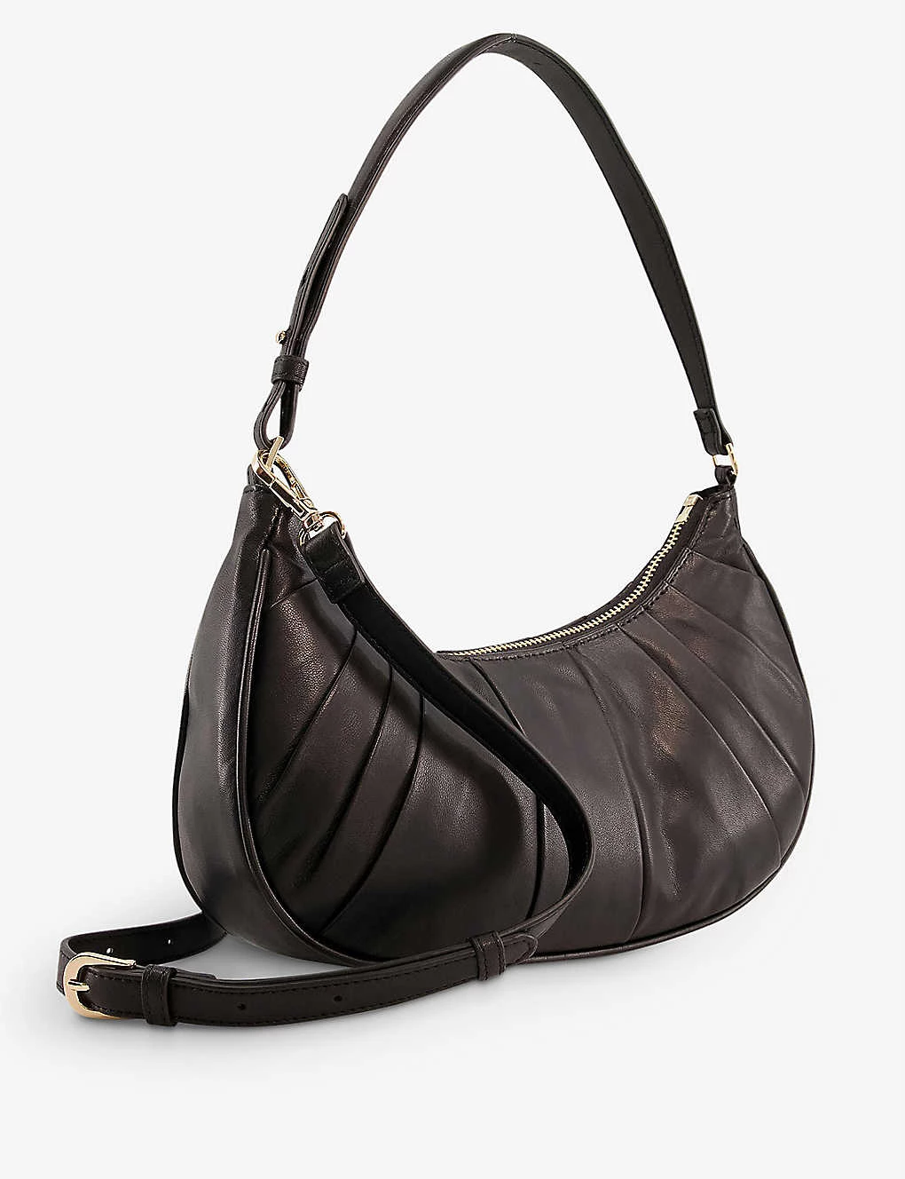 DUNE Dreyya Pleated Leather Shoulder Bag For Womens Black-leather