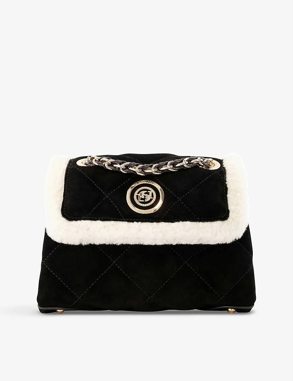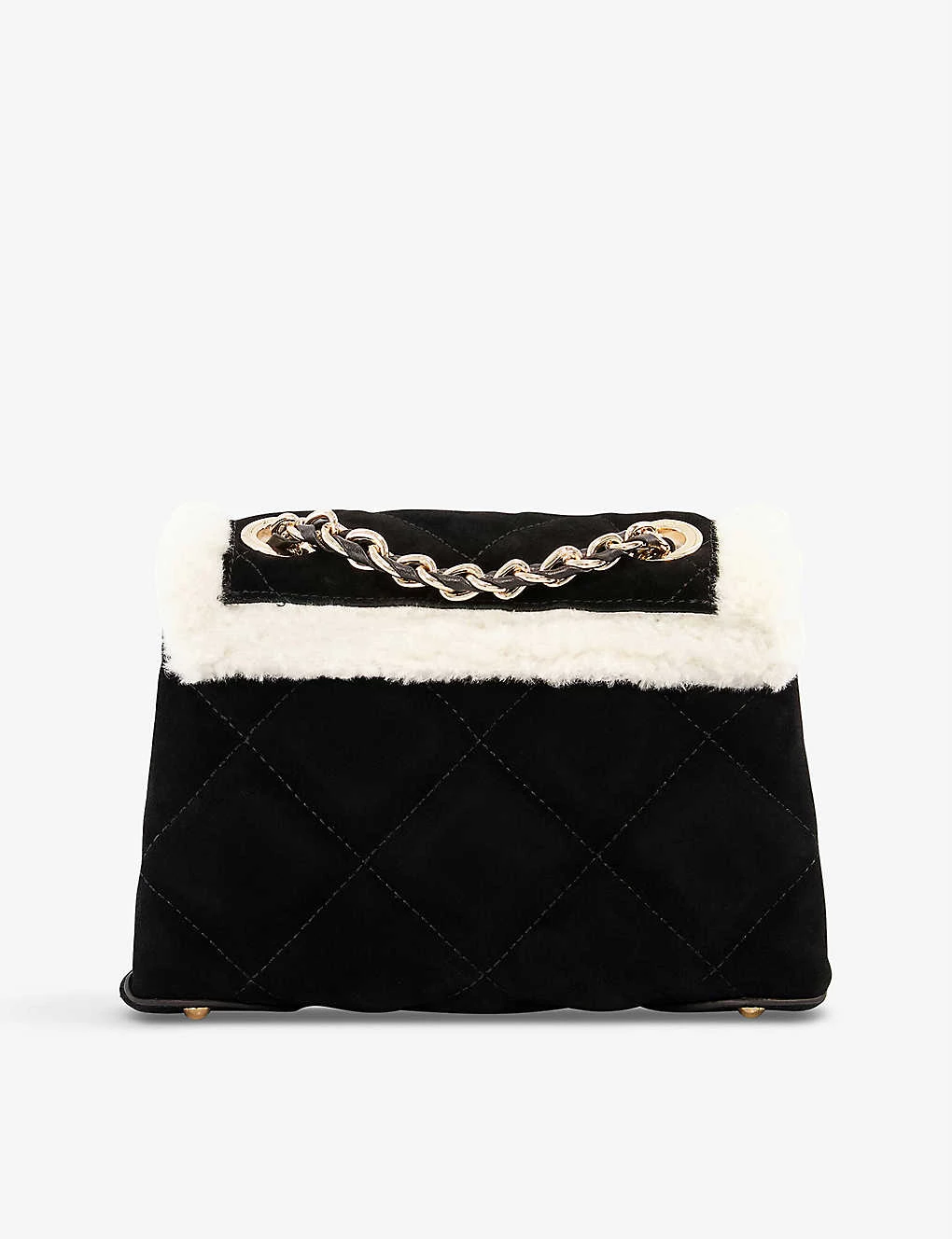DUNE Duchess Quilted Faux Shearling-trimmed Suede Cross-body Bag For Womens Black-suede