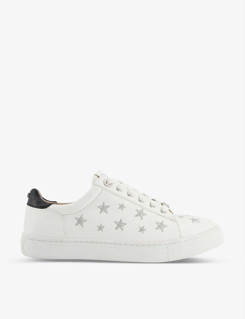 DUNE Ecliptic Star-embroidered Faux-leather Low-top Trainers For Womens White-synthetic