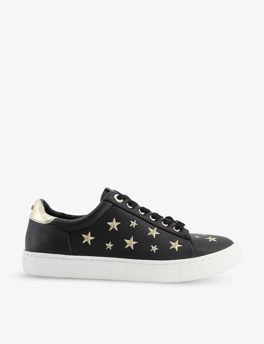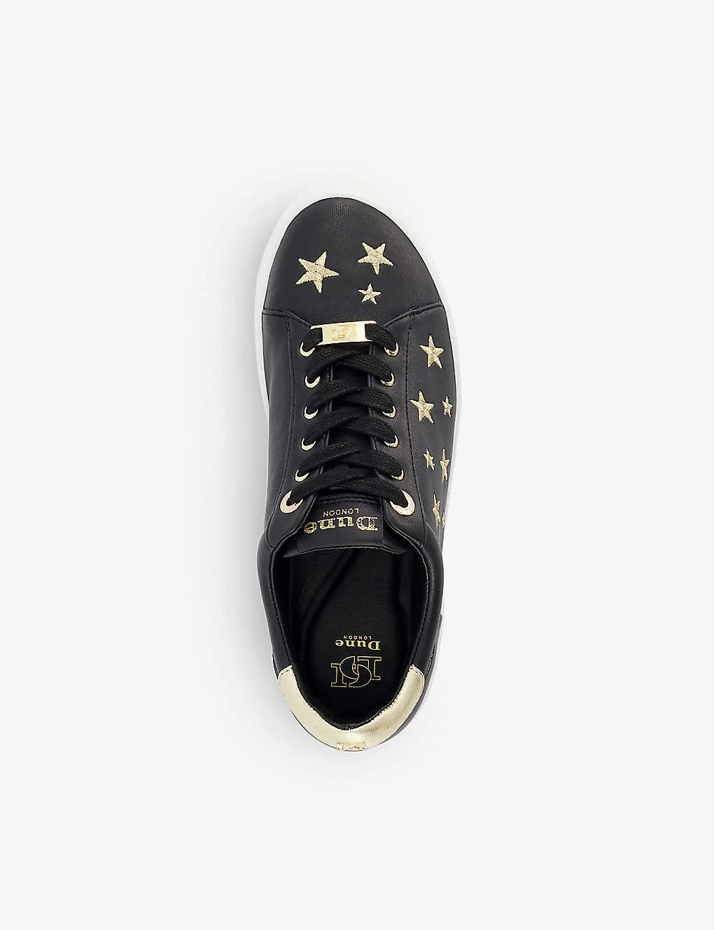 DUNE Ecliptic Star-embroidered Faux Leather Trainers For Womens Black-synthetic