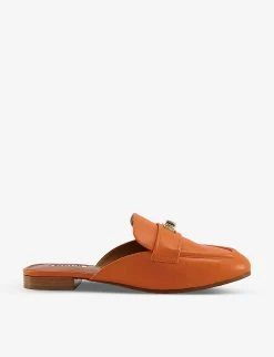 DUNE Glare Turn-lock Backless Leather Loafers For Womens Orange-leather