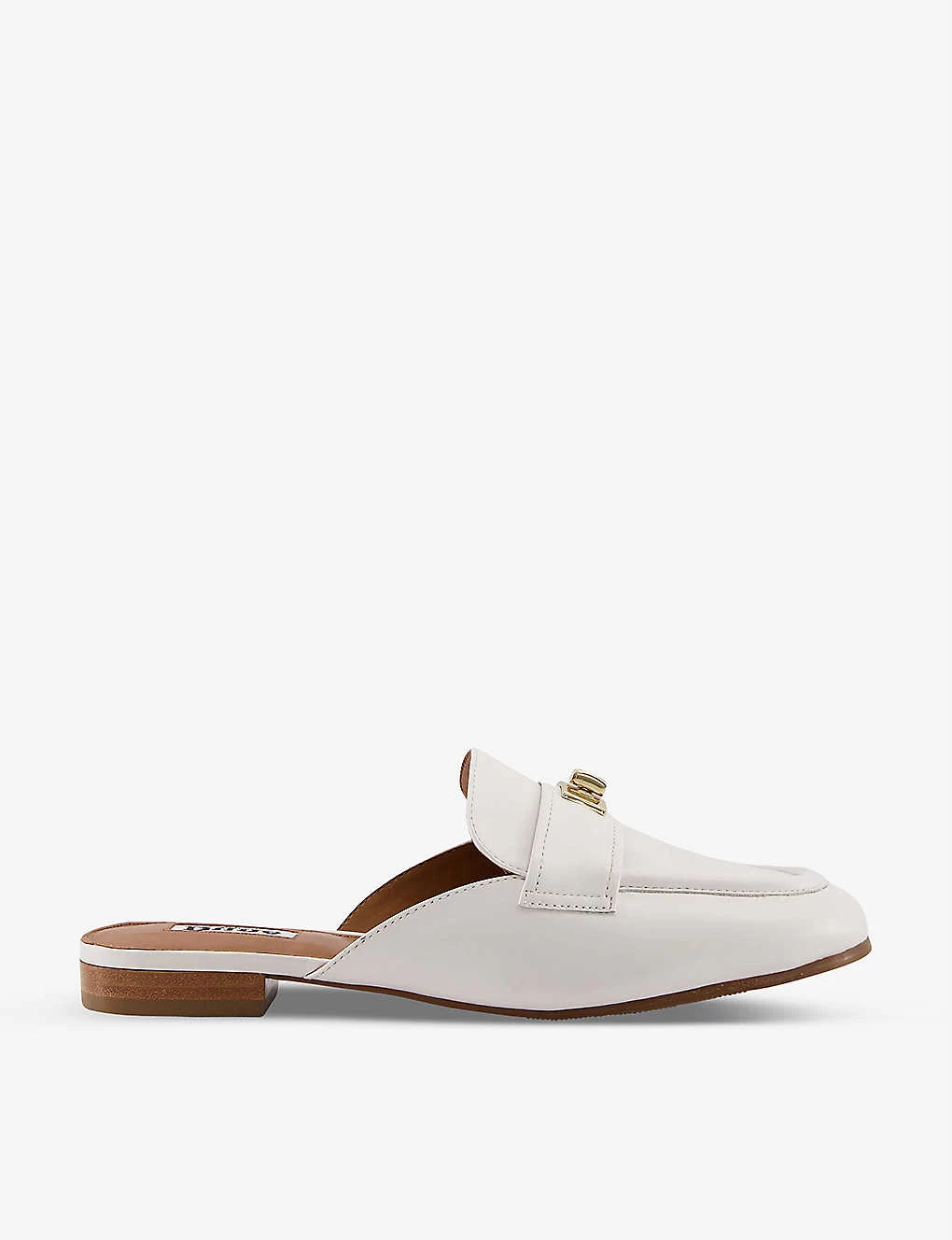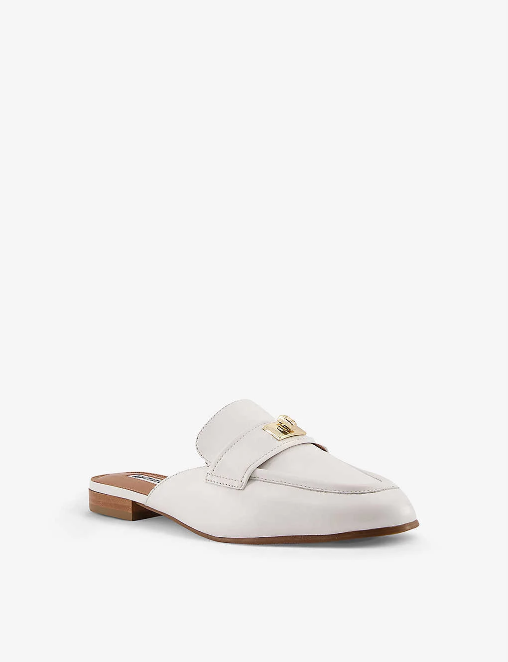DUNE Glare Turn-lock Backless Leather Loafers For Womens White-leather