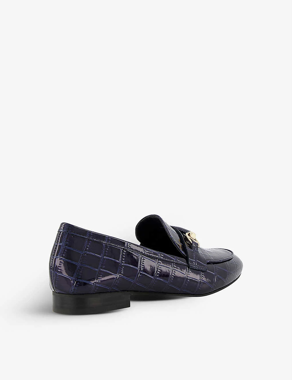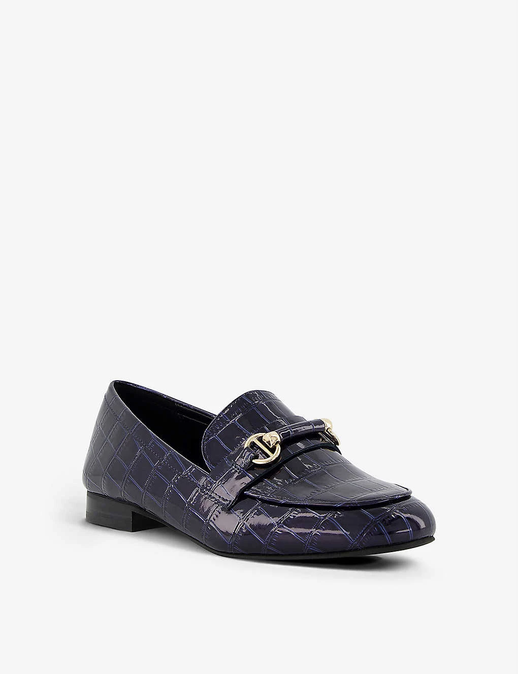 DUNE Grange Croc-embossed Patent Faux Leather Loafers For Womens Navy-reptile Synthetic