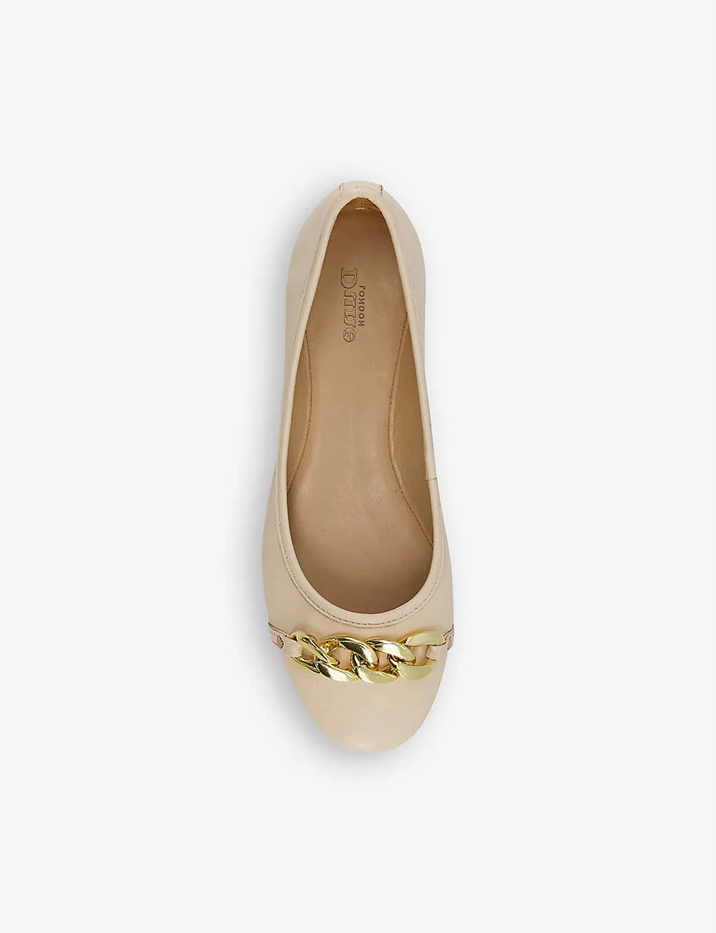 DUNE Hassel Chain-trimmed Leather Ballet Flats For Womens Ecru-leather
