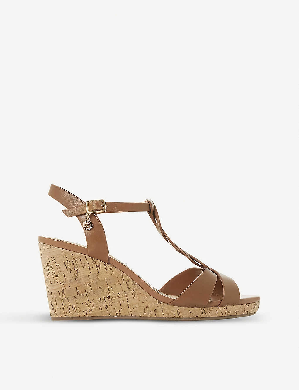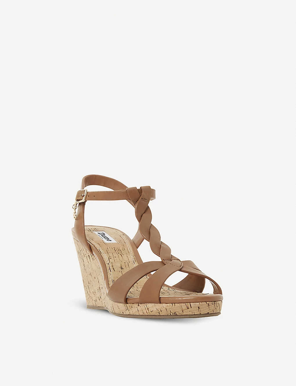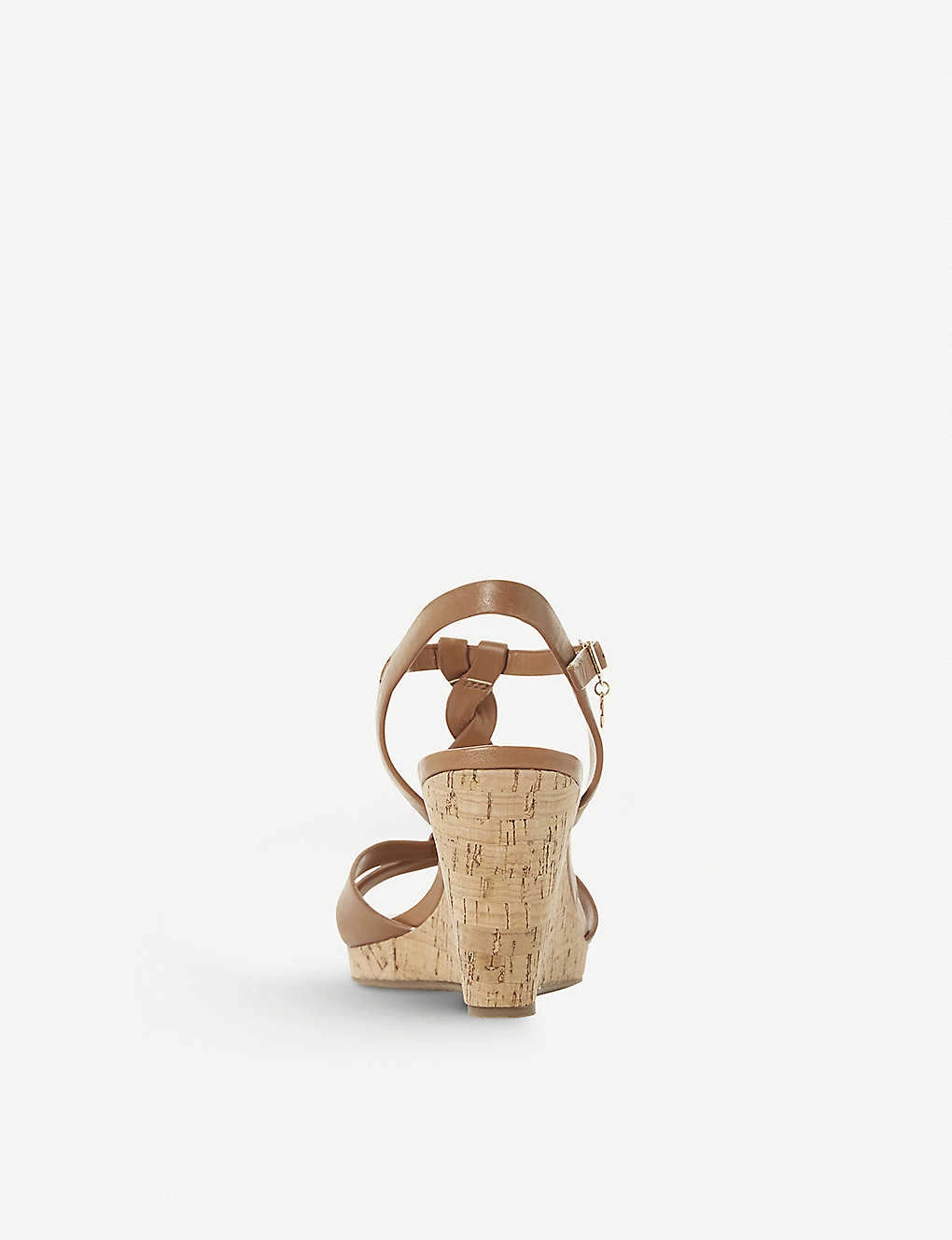 DUNE Koala Plait T-bar Cork Wedge Sandals For Womens Tan-leather