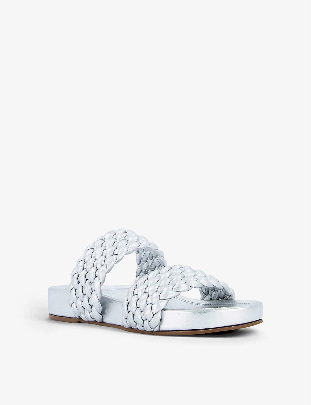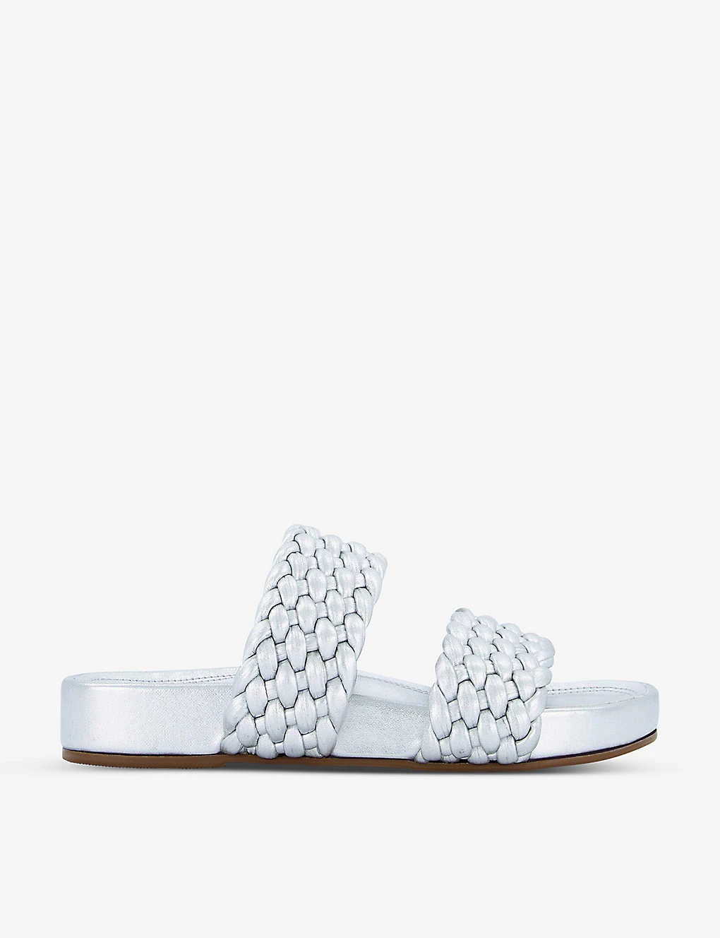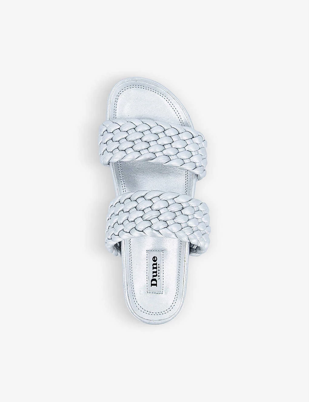 DUNE Laylow Double Woven-strap Leather Sliders For Womens Silver-leather
