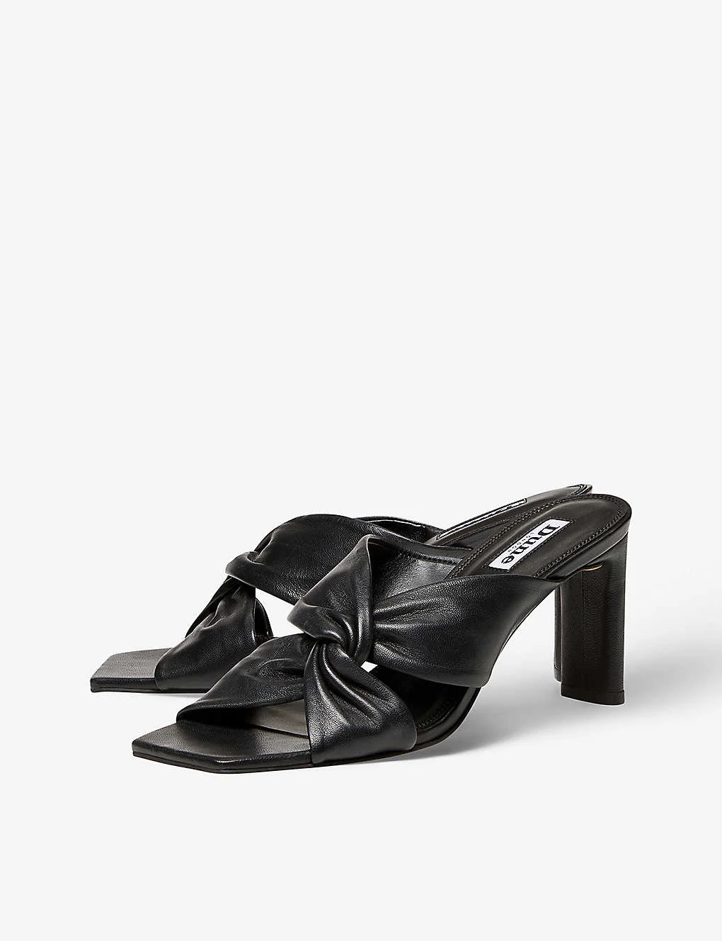 DUNE Magnet Twist-knot Heeled Leather Mules For Womens Black-black Leather