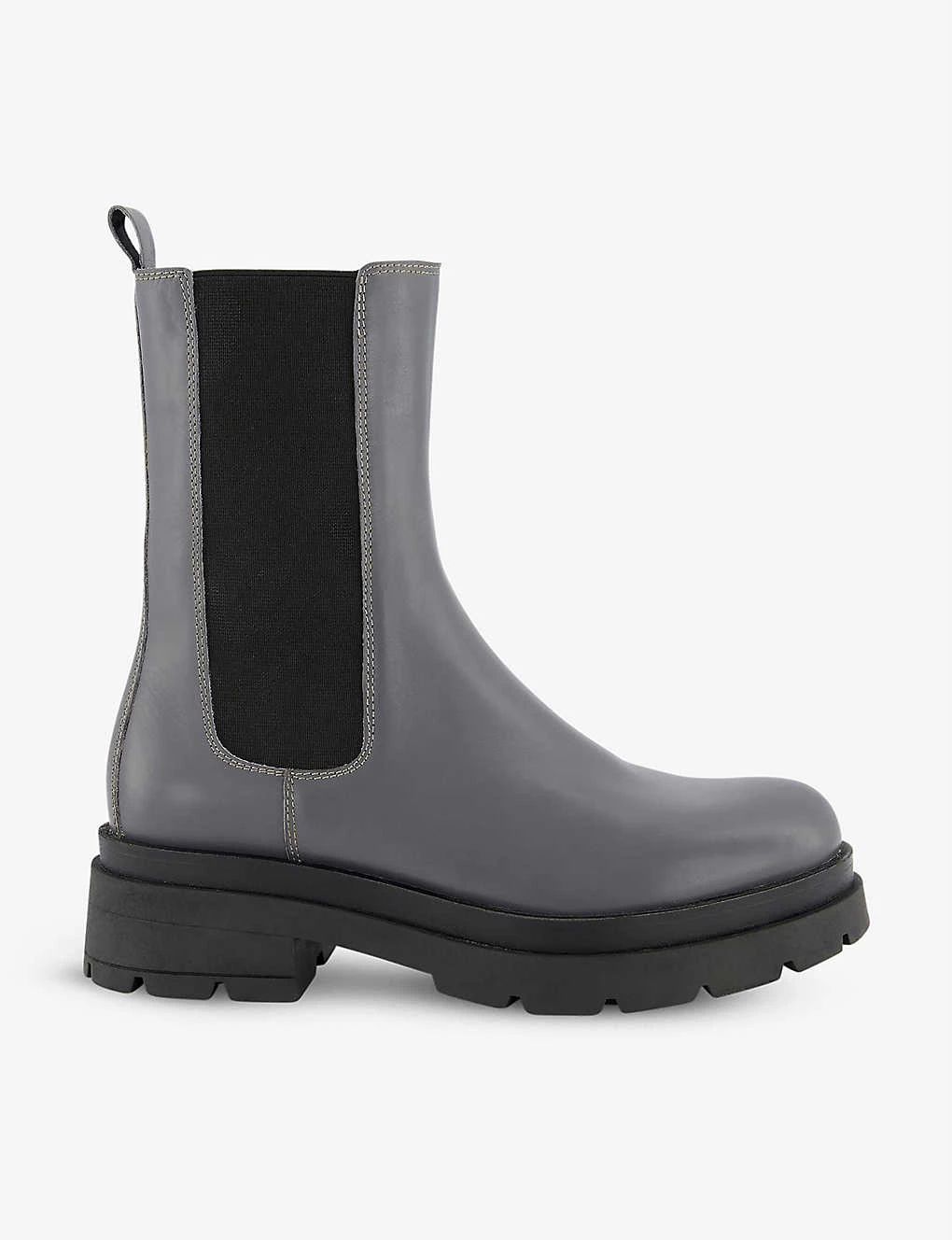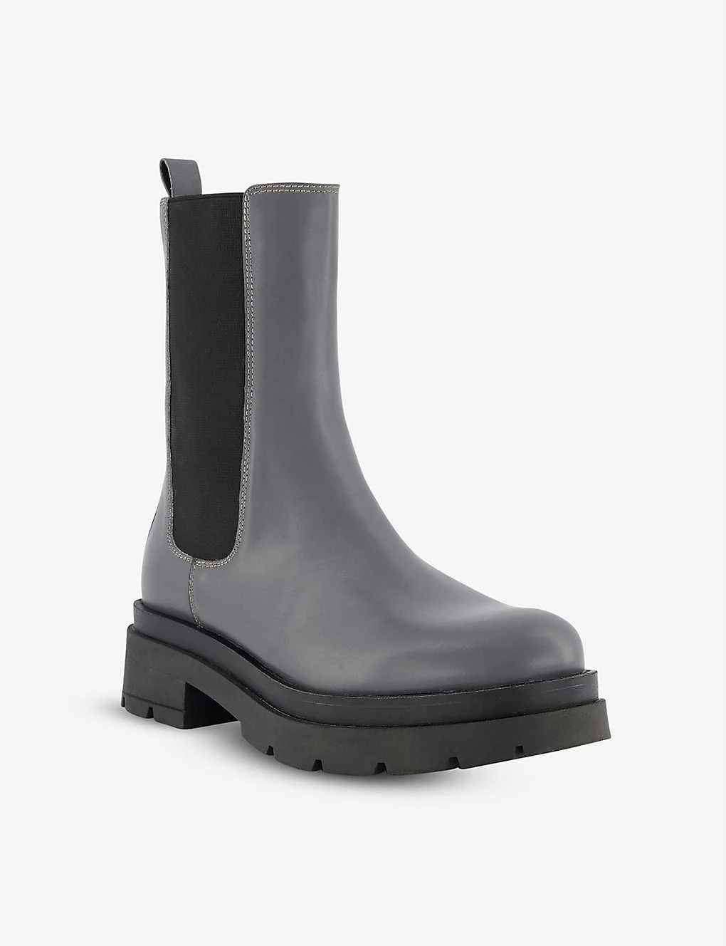 DUNE Palmz Chunky-soled Leather Chelsea Boots For Womens Grey-leather