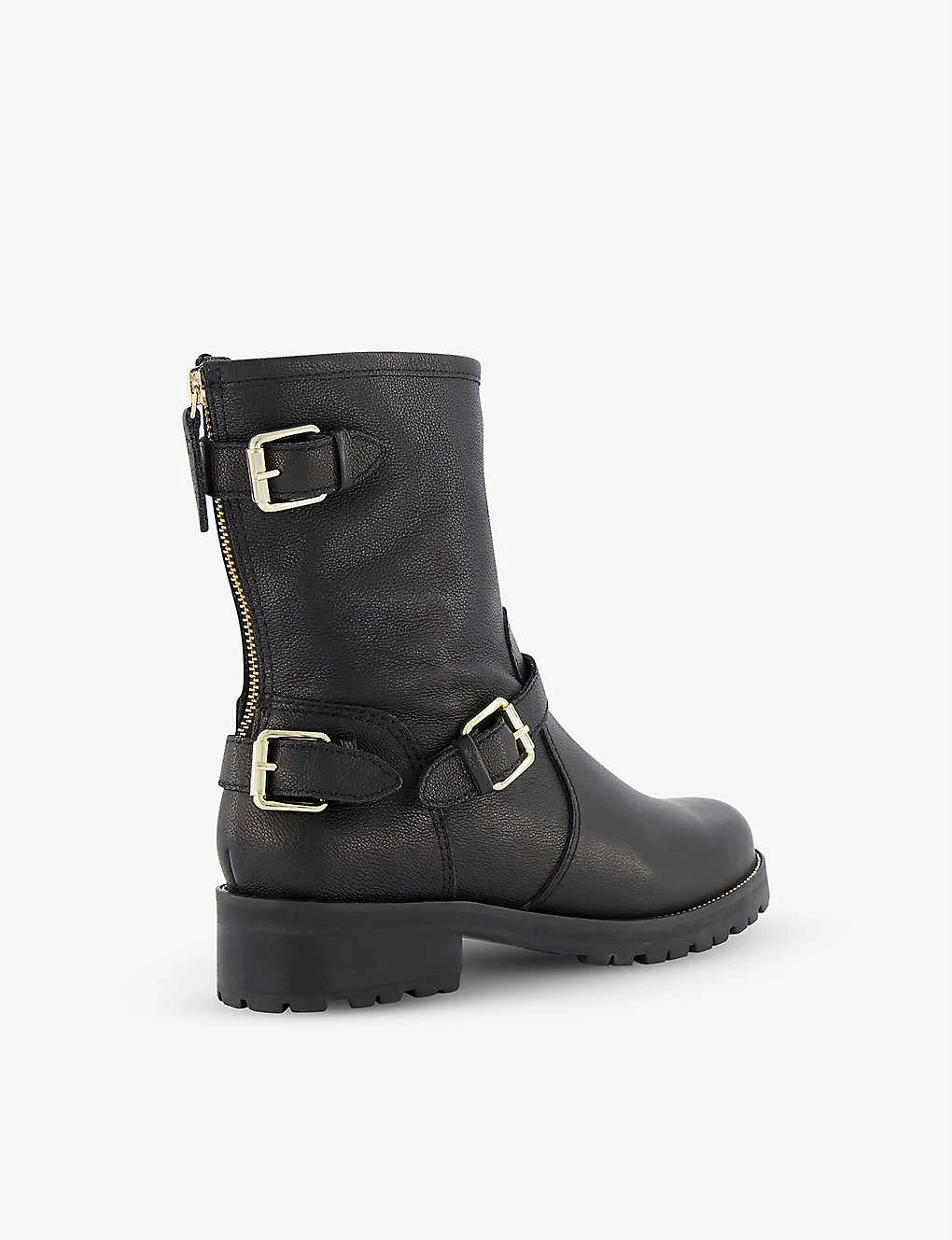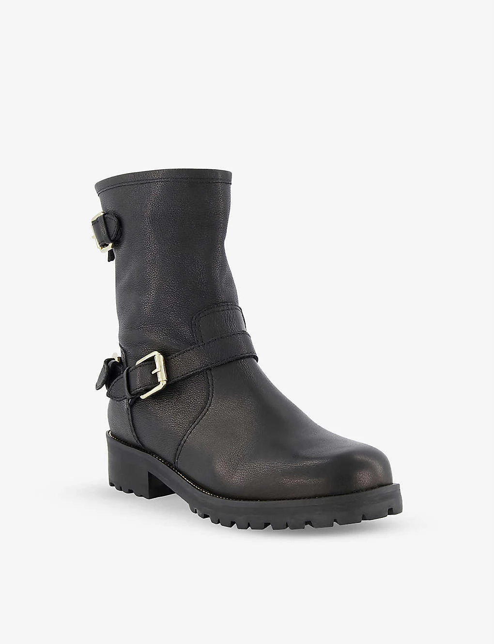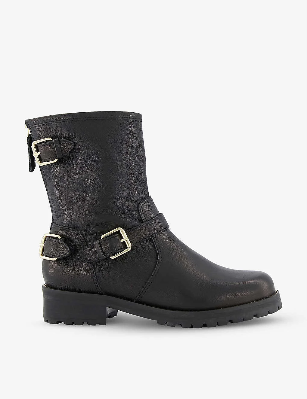 DUNE Panthers Buckle-detail Leather Biker Boots For Womens Black-plain Leather