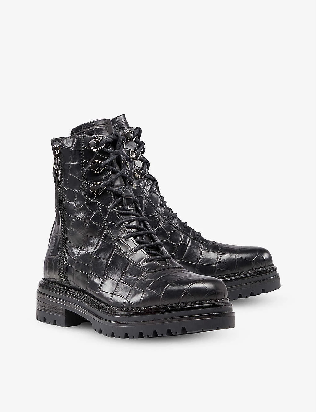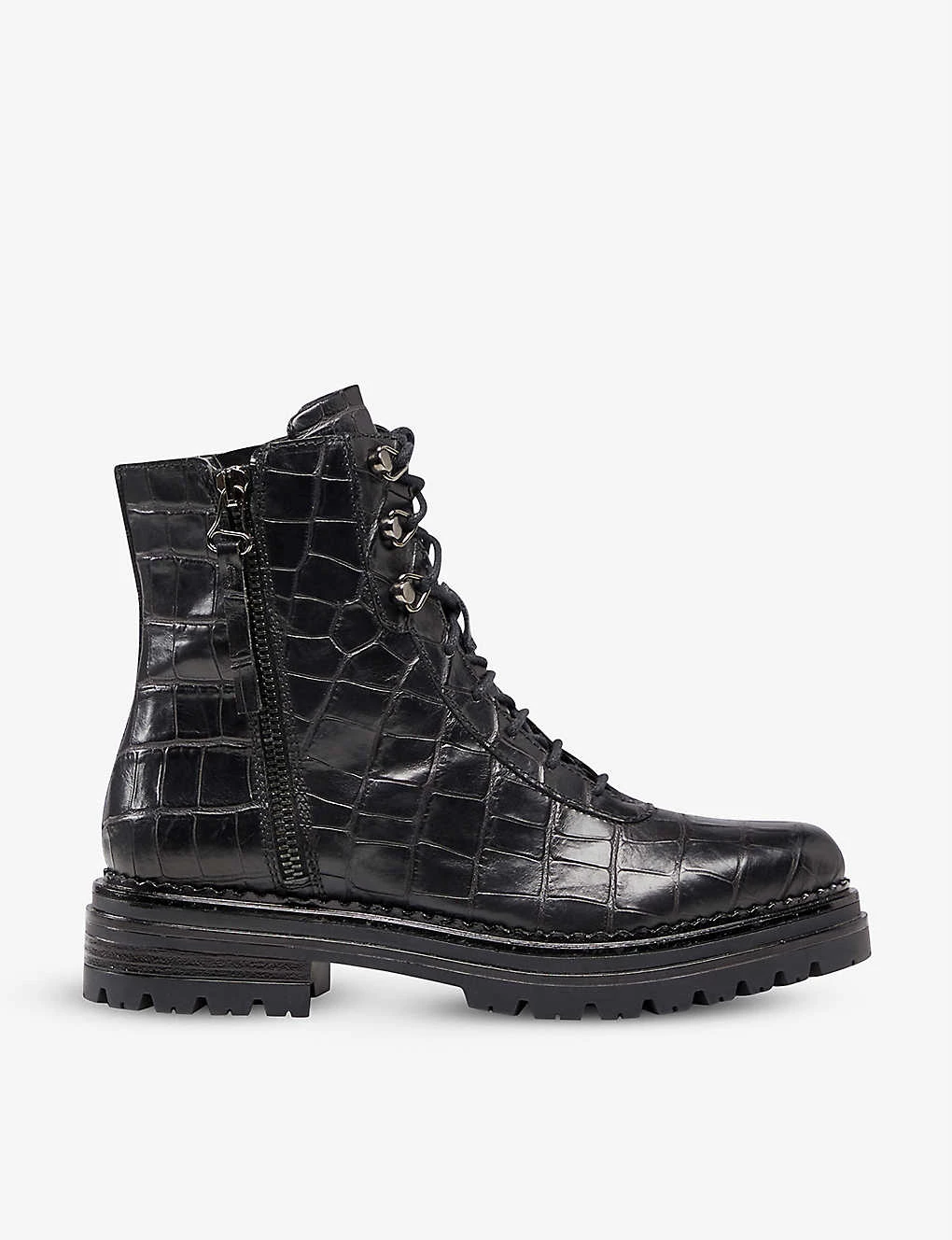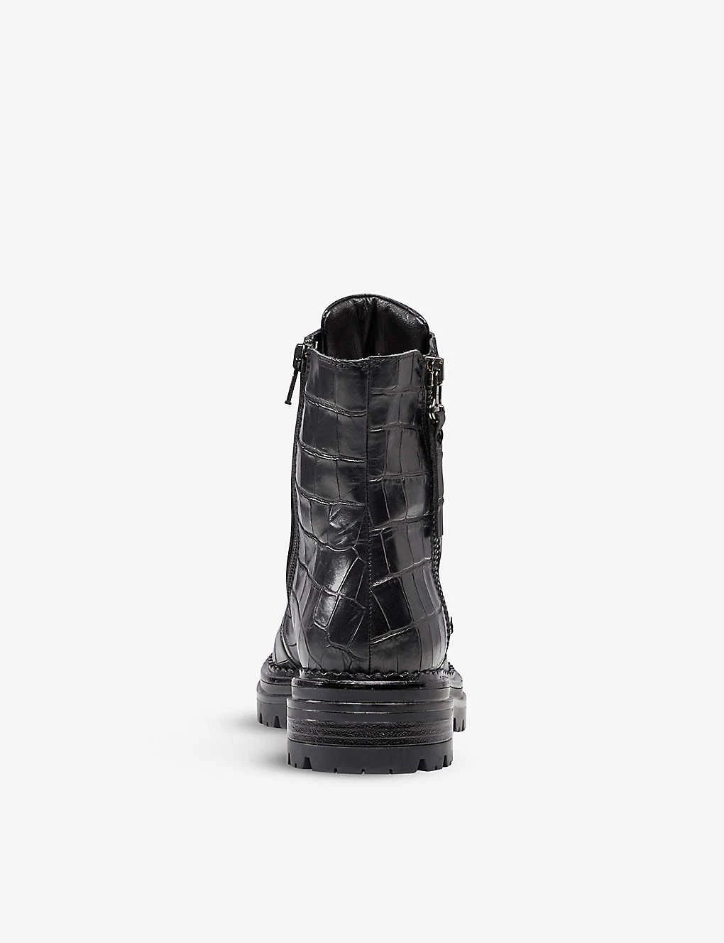 DUNE Phase Crocodile-embossed Leather Boots For Womens Black-croc Print Leather