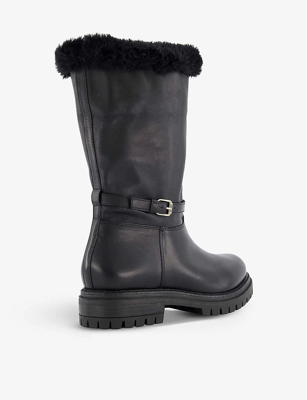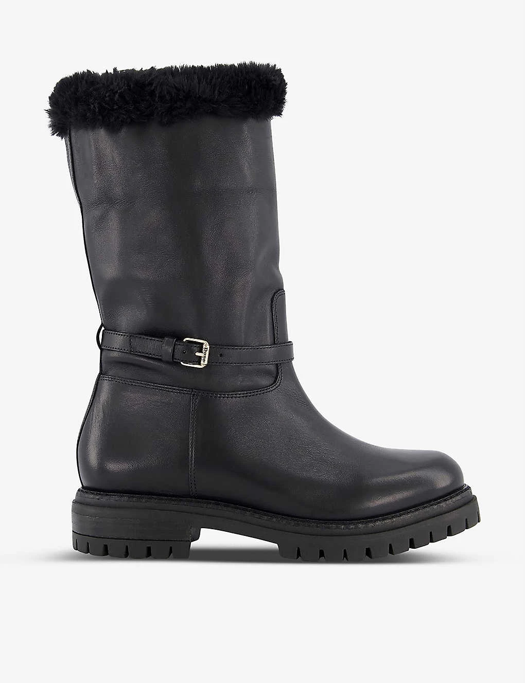 DUNE Regents Faux Fur-lined Leather Biker Boots For Womens Black-leather