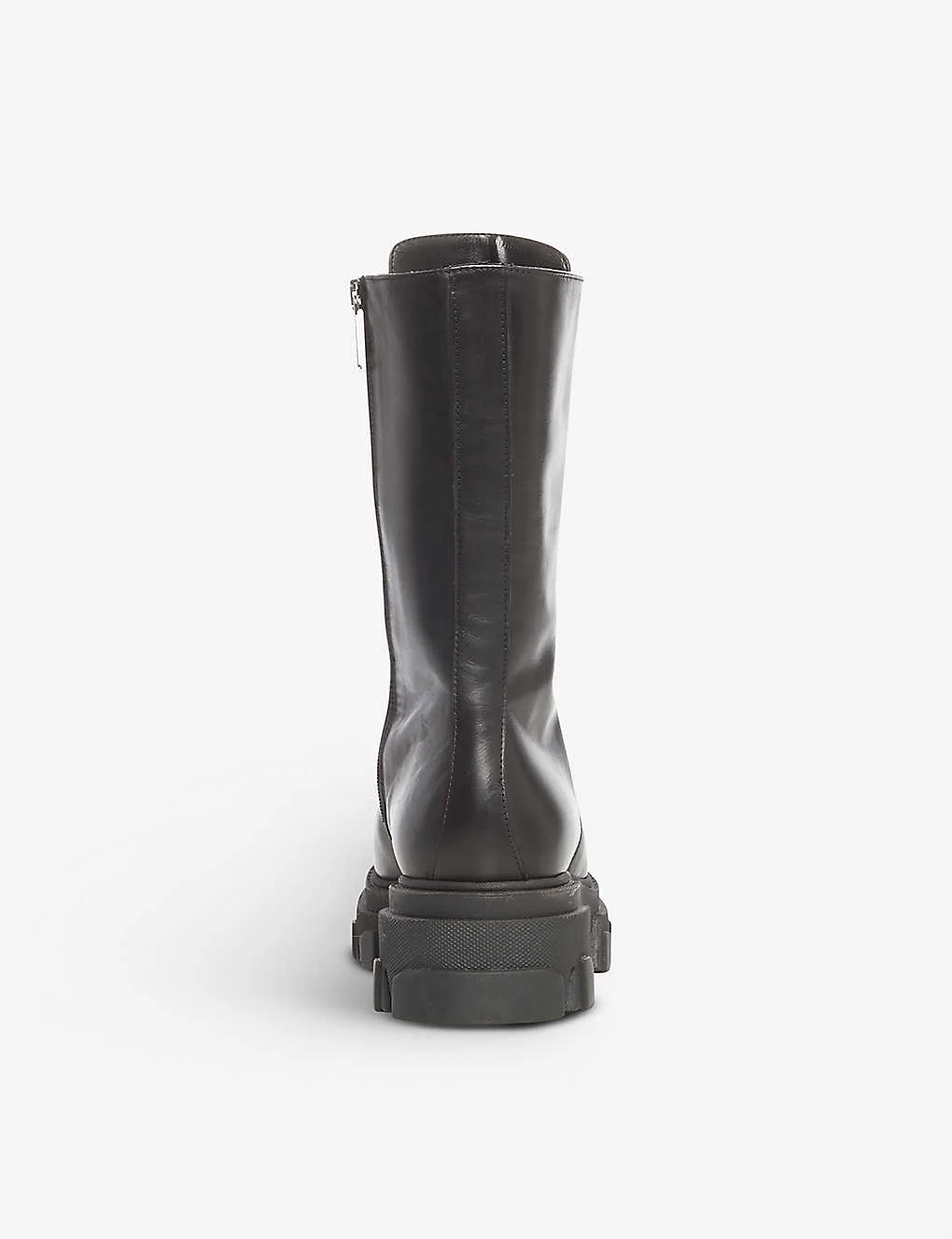 DUNE Roshi Chunky Sole Leather Biker Boots For Womens Black-leather