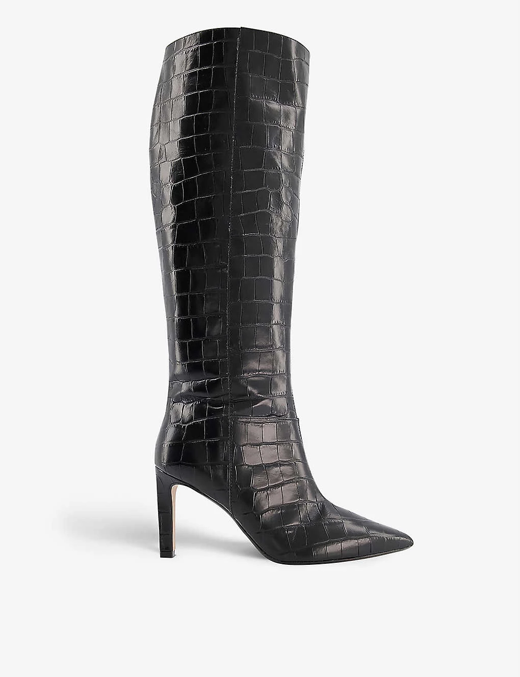 DUNE Spice Snakeskin-embossed Leather Knee-high Boots For Womens Black-croc Print Leather