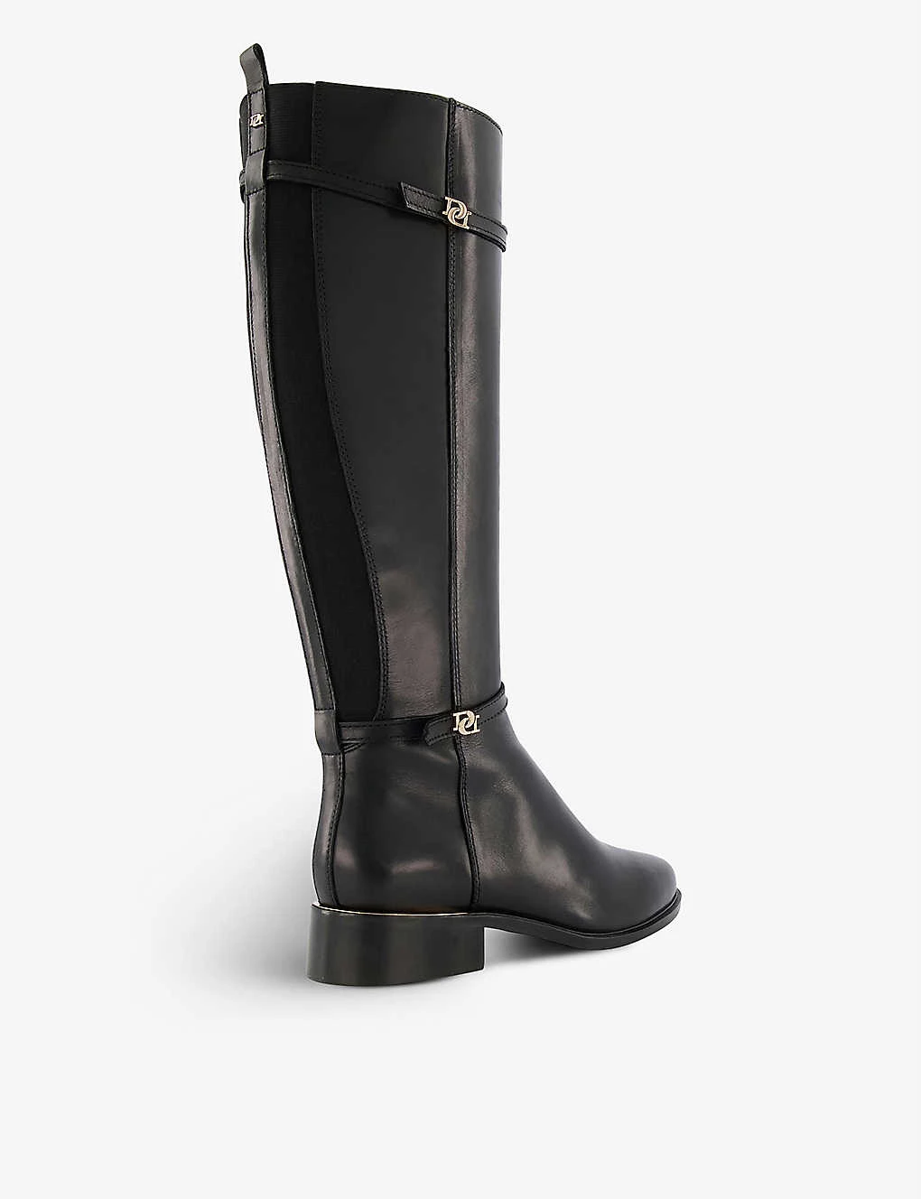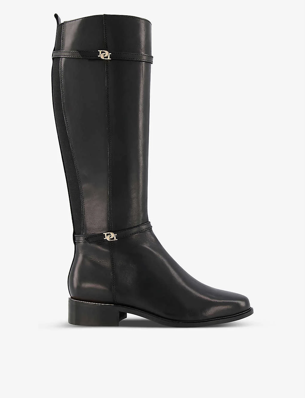 DUNE Tap Leather Panel Riding Boots For Womens Black-leather